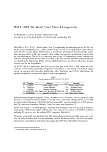 WSCC 2019 was ICGA's continuation of its investigation of top chess engines playing at Blitz tempo with the consequential loss of accuracy. It was held in Macau in parallel with the 'WCCC' classical tempo and 'WCSC' neutral-hardware events. The ICGA demonstrated that, even so, the engines play at super-GM level. On this occasion, JONNY proved incisive to win while KOMODO sustained two losses.