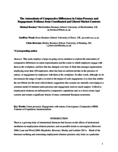 The antecedents of comparative differences in union presence and engagement: evidence from coordinated and liberal market contexts.