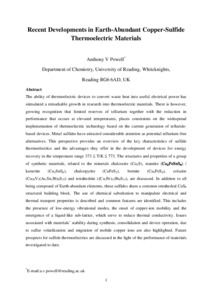 Powell, A. V. (2019) Recent developments in Earth-abundant copper-sulfide thermoelectric materials. Journal of Applied Physics, 126. 100901. ISSN 0021-8979 doi: 10.1063/1.5119345