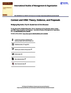 Mayrhofer, W., Gooderham, P. N. and Brewster, C. ORCID: https://orcid.org/0000-0001-5314-1518 (2019) Context and HRM: theory, evidence, and proposals. International Studies of Management & Organization, 49 (4). pp. 355-371. ISSN 1558-0911 doi: 10.1080/00208825.2019.1646486