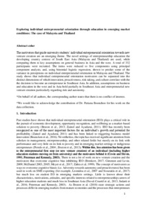 Individual entrepreneurial orientation in higher education and unsettling emerging market conditions: The cases of Malaysia and Thailand.