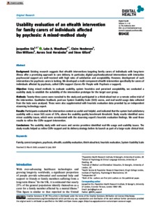 Sin, J., Woodham, L. A., Henderson, C., Williams, E., Sese Hernandez, A. and Gillard, S. (2019) Usability evaluation of an eHealth intervention for family carers of individuals affected by psychosis: a mixed-method study. Digital Health, 5. pp. 1-18. ISSN 2055-2076 doi: 10.1177/2055207619871148