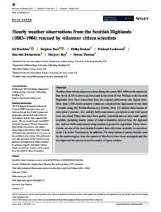 Hawkins, E. ORCID: https://orcid.org/0000-0001-9477-3677, Burt, S. ORCID: https://orcid.org/0000-0002-5125-6546, Brohan, P., Lockwood, M. ORCID: https://orcid.org/0000-0002-7397-2172, Richardson, H., Roy, M. and Thomas, S. (2019) Hourly weather observations from the Scottish Highlands (1883–1904) rescued by volunteer citizen scientists. Geoscience Data Journal, 6 (2). pp. 160-173. ISSN 2049-6060 doi: 10.1002/gdj3.79
