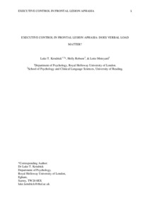Kendrick, L. T., Robson, H. and Meteyard, L. (2019) Executive control in frontal lesion aphasia: Does verbal load matter? Neuropsychologia, 133. 107178. ISSN 0028-3932 doi: 10.1016/j.neuropsychologia.2019.107178