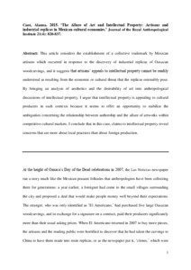 The allure of art and intellectual property: Artisans and industrial replicas in Mexican cultural economies.