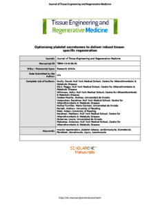 Scully, D., Sfyri, P., Wilkinson, H. N., Acebes-Huerta, A., Verpoorten, S., Munoz-Turrillas, M., Parnell, A., Patel, K., Hardman, M. J., Gutierrez, L. and Matsakas, A. (2020) Optimising platelet secretomes to deliver robust tissue specific regeneration. Journal of Tissue Engineering and Regenerative Medicine, 14 (1). pp. 82-98. ISSN 1932-7005 doi: 10.1002/term.2965