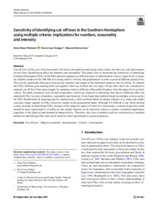 Sensitivity of identifying cut‑off lows in the Southern Hemisphere using multiple criteria: Implications for numbers, seasonality and intensity.
