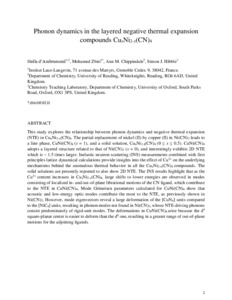 Phonon dynamics in the layered negative thermal expansion compounds CuxNi2-x(CN)4.