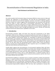 Our article considers the Environment Impact Assessment (EIA) for certain sectors in India and examines the implications of decentralization. We find that the decentralization of EIA processes has improved environmental regulation and been successful in reducing polluting activities in India. Our evidence suggests that decentralization was associated with relatively fewer firm births in states with stricter environmental enforcement. Key among our recommendations is that the development of stronger collaborations between EIA, SEIAA and State Pollution Control Board would enhance enforcement of environmental regulation and reduce disparities between states, through knowledge-and-resource sharing and improving technical, financial and administrative capabilities across states.