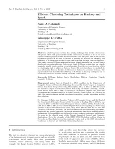 Al Ghamdi, S. and Di Fatta, G. (2019) Efficient clustering techniques on Hadoop and Spark. International Journal of Big Data Intelligence, 6 (3/4). pp. 269-290. ISSN 2053-1389 doi: 10.1504/IJBDI.2019.10018592