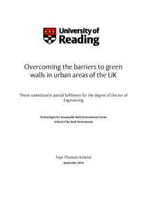Thomsit-Ireland, F. (2019) Overcoming the barriers to green walls in urban areas of the UK. EngD thesis, University of Reading. doi: 10.48683/1926.00086470