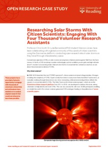 Researching solar storms with citizen scientists: engaging with four thousand volunteer research assistants.