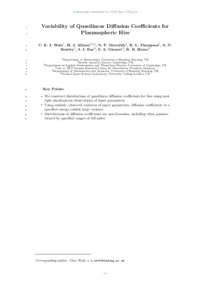 Watt, C., Allison, H., Meredith, N., Thompson, R., Bentley, S., Rae, I. J., Glauert, S. and Horne, R. (2019) Variability of quasilinear diffusion coefficients for plasmaspheric hiss. Journal of Geophysical Research: Space Physics, 124 (11). pp. 8488-8506. ISSN 2169-9402 doi: 10.1029/2018JA026401