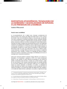 Wieczorek, I. (2019) Dispositivos atmosféricos, tecnologías de la inmersión y acumulaciones de espumas, o las paradojas de la burbuja (Atmospheric devices, technologies of immersion and foam accumulations, or the bubble paradox). In: José Miguel de Prada Poole. La arquitectura perecedera de las pompas de jabón. Recolectores Urbanos Editorial, Málaga, Spain, pp. 59-64. ISBN 9788494966316