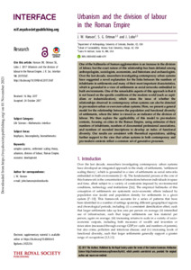 Hanson, J. W., Ortman, S. G. and Lobo, J. (2017) Urbanism and the division of labour in the Roman Empire. Journal of the Royal Society Interface, 14 (136). 20170367. ISSN 1742-5662 doi: 10.1098/rsif.2017.0367