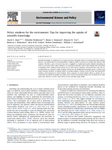 Rose, D. C., Mukherjee, N., Simmons, B. I., Tew, E. R., Robertson, R. J., Vadrot, A. B.M., Doubleday, R. and Sutherland, W. J. (2020) Policy windows for the environment: Tips for improving the uptake of scientific knowledge. Environmental Science and Policy, 113. pp. 47-54. ISSN 1462-9011 doi: 10.1016/j.envsci.2017.07.013