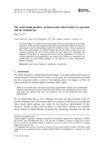 Coe, P. ORCID: https://orcid.org/0000-0002-6036-4127 (2015) The social media paradox: an intersection with freedom of expression and the criminal law. Information and Communications Technology Law, 24 (1). pp. 16-40. ISSN 1360-0834 doi: 10.1080/13600834.2015.1004242