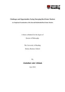 Alfalah, A. A. (2018) Challenges and opportunities facing emerging real estate markets: an empirical examination of the Kuwait residential real estate market. PhD thesis, University of Reading. doi: 10.48683/1926.00086784