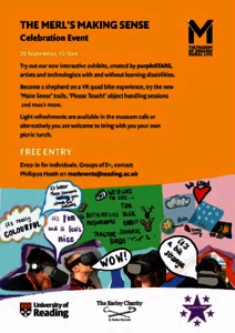 Celebration and launch of purpleSTARS virtual reality (VR) interactive experiences. Modern Shepherd Quad Bike experience and English Forest four seasons experience. Interactive sensor sheep and horse & cart sounds. The interactive exhibits were commissioned from purpleSTARS by the MERL and funded by the Earley Charity.