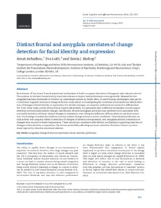 Achaibou, A., Loth, E. and Bishop, S. J. (2015) Distinct frontal and amygdala correlates of change detection for facial identity and expression. Social Cognitive and Affective Neuroscience, 11 (2). pp. 225-233. ISSN 1749-5016 doi: 10.1093/scan/nsv104