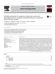 Matcham, F., Rayner, L., Hutton, J., Monk, A., Steel, C. and Hotopf, M. (2014) Self-help interventions for symptoms of depression, anxiety and psychological distress in patients with physical illnesses: a systematic review and meta-analysis. Clinical Psychology Review, 34 (2). pp. 141-157. ISSN 0272-7358 doi: 10.1016/j.cpr.2014.01.005