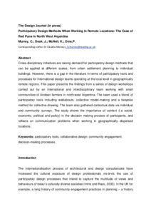 Murray, C., Doak, J., McNeil, K. and Oms, P. (2020) Participatory design methods when working in remote locations: The case of Red Puna in north west Argentina. The Design Journal, 23 (2). pp. 1-24. ISSN 1460-6925 doi: 10.1080/14606925.2020.1726663