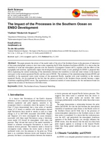 Stepanov, V. N. (2019) The impact of the processes in the Southern Ocean on ENSO development. Earth Sciences, 8 (2). pp. 117-125. ISSN 2328-5974 doi: 10.11648/j.earth.20190802.15