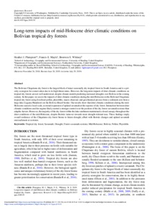 Long-term impacts of mid-Holocene drier climatic conditions on Bolivian tropical dry forests.