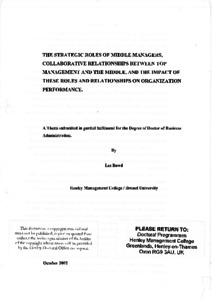 Bowd, L. (2002) The strategic role of middle managers, collaborative relationships between top management and the middle, and the impact of these roles and relationships on organization performance. DBA thesis, Henley Business School, University of Reading.