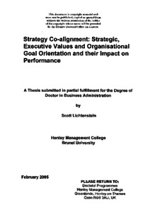 Lichtenstein, S. (2005) Strategy co-alignment: strategic executive values and organisational goal orientation and their impact on performance. DBA thesis, Henley Business School, University of Reading.