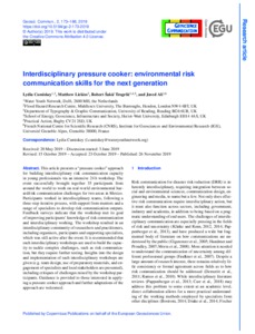 Cumiskey, L., Lickiss, M., Šakić Trogrlić, R. and Ali, J. (2019) Interdisciplinary pressure cooker: environmental risk communication skills for the next generation. Geoscience Communications, 2 (2). pp. 173-186. ISSN 2569-7110 doi: 10.5194/gc-2-173-2019