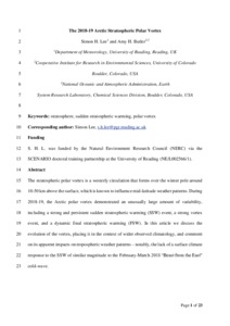 Lee, S. H. and Butler, A. H. (2020) The 2018-19 Arctic stratospheric polar vortex. Weather, 75 (2). pp. 52-57. ISSN 0043-1656 doi: 10.1002/wea.3643