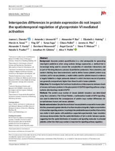 Dunster, J. L. ORCID: https://orcid.org/0000-0001-8986-4902, Unsworth, A. J., Bye, A. P. ORCID: https://orcid.org/0000-0002-2061-2253, Haining, E. J.,, Sowa, M. A., Di, Y., Sage, T., Pallini, C., Pike, J. A., Hardy, A. T., Nieswandt, B., García, Á., Watson, S. P., Poulter, N. S., Gibbins, J. M. ORCID: https://orcid.org/0000-0002-0372-5352 and Pollitt, A. Y. ORCID: https://orcid.org/0000-0001-8706-5154 (2020) Interspecies differences in protein expression do not impact the spatiotemporal regulation of glycoprotein VI mediated activation. Journal of Thrombosis and Haemostasis, 18 (2). pp. 485-496. ISSN 1538-7836 doi: 10.1111/jth.14673