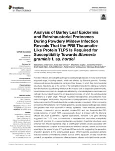 Analysis of barley leaf epidermis and extrahaustorial proteomes during powdery mildew infection reveals that the PR5 thaumatin-like protein TLP5 is required for susceptibility towards Blumeria graminis f. sp. hordei.