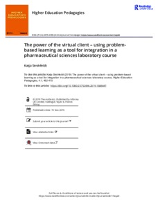 Strohfeldt, K. (2019) The power of the virtual client – using problem-based learning as a tool for integration in a pharmaceutical sciences laboratory course. Higher Education Pedagogies, 4 (1). pp. 462-475. ISSN 2375-2696 doi: 10.1080/23752696.2019.1686647