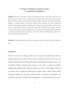 The impact of leadership on absorptive capacity: new insights from the UAE