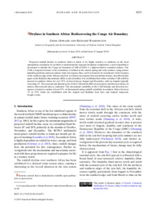 Howard, E. and Washington, R. (2019) Drylines in Southern Africa: Rediscovering the Congo Air Boundary. Journal of Climate, 32 (23). pp. 8223-8242. ISSN 0894-8755 doi: 10.1175/JCLI-D-19-0437.1