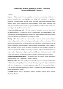The relevance of mixed methods for network analysis in tourism and hospitality research.