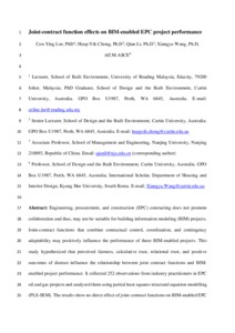 Engineering, procurement, and construction (EPC) contracting does not promote collaboration and thus, may not be suitable for building information modeling (BIM) projects. Joint-contract functions that combine contractual control, coordination, and contingency adaptability may positively influence the performance of these BIM-enabled projects. This study hypothesized that perceived fairness, calculative trust, relational trust, and positive outcomes of distrust influence the relationship between joint contract functions and BIM-enabled project performance. It collected 252 observations from industry practitioners in EPC oil and gas projects and analyzed them using partial least squares structural equation modelling (PLS-SEM). The results show no direct effect of joint-contract functions on BIM-enabled EPC project performance but do show significant total and indirect relationship effects that are influenced by perceived fairness and relational trust. The findings contribute to construction contracting research by empirically showing how formal contracts focusing on joint-contract functions can influence BIM-enabled EPC project performance. The current findings also shed light on appropriate contract framing for BIM-enabled EPC project stakeholders, an area not explored in the previous literature.