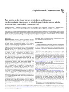 Two apples a day lower serum cholesterol and improve cardiometabolic biomarkers in mildly hypercholesterolemic adults: a randomized, controlled, crossover trial