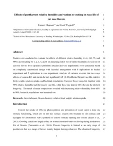 Effects of postharvest relative humidity and various re-cutting on vase life of cut rose flowers.