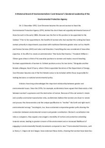 In looking at Carol Browner's leadership at the Environmental Protection Agency, this article draws on insights from the literature on women and executive politics, women and the environment, and environmental policy and decision-making, bridging these fields of study to explore the height of US executive environmental politics through a gendered lens. It examines whether Browner articulated a feminist analysis of environmental issues and whether her life experiences differed from those of the men who previously dominated environmental politics, and if those translated into distinctive concerns and policies. Focusing on a selection of Browner's key environmental priorities and initiatives, this article ultimately assesses the impact she had on the development of environmental policy in the United States.