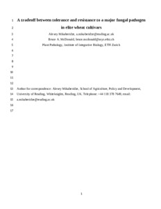 Mikaberidze, A. and McDonald, B. A. (2020) A tradeoff between tolerance and resistance to a major fungal pathogen in elite wheat cultivars. New Phytologist, 226 (3). pp. 879-890. ISSN 1469-8137 doi: 10.1111/nph.16418