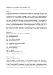 84 years elapsed between the announcements of the periodic table and that of the DNA double helix in 1953, and the two have been combined in many ways since then. In this chapter an outline of the fundamentals of DNA structure leads into a range of examples showing how the natural magnesium and potassium ions found in nature can be substituted in a diversity of applications. The dynamic structures found in nature have been studied in the more controlled but artificial environment of the DNA crystal using examples from sodium to platinum and also in a range of DNA-binding metal complexes. While NMR is an essential technique for studying nucleic acid structure and conformation, most of our knowledge of metal ion binding has come from X-ray crystallography. These days the structures studied, and therefore also the diversity of metal binding, go beyond the double helix to triplexes, hairpin loops, junctions and quadruplexes, and the chapter describes briefly how these pieces fit into the DNA jigsaw. In a final section, the roles of metal cations in the crystallisation of new DNA structures are discussed, along with an introduction to the versatility of the periodic table of absorption edges for nucleic acid structure determination.