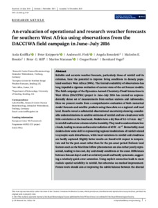 An evaluation of operational and research weather forecasts for Southern West Africa using observations from the DACCIWA field campaign in June‐July 2016.