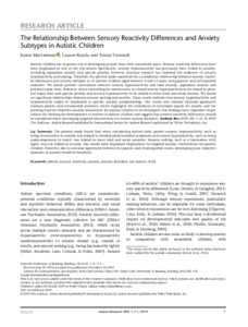 MacLennan, K., Roach, L. and Tavassoli, T. ORCID: https://orcid.org/0000-0002-7898-2994 (2020) The relationship between sensory reactivity differences and anxiety subtypes in autistic children. Autism Research, 13 (5). pp. 785-795. ISSN 1939-3806 doi: 10.1002/aur.2259