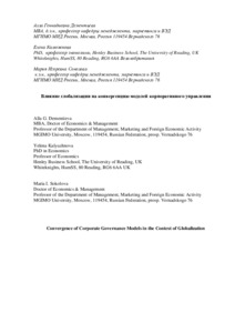 Dementieva, A., Kalyuzhnova, Y. ORCID: https://orcid.org/0000-0002-5781-8837 and Sokolova, M. (2018) Convergence of corporate governance models in the context of globalization. Journal of International Relations Theory and World Politics, 16 (4 (55)). pp. 117-136. ISSN 1728-2756 doi: 10.17994/IT.2018.16.4.55.7