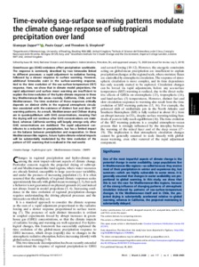 Time-evolving sea surface warming patterns modulate the climate change response of subtropical precipitation over land.