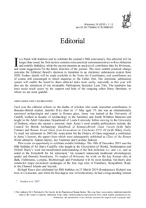 Eckardt, H. ORCID: https://orcid.org/0000-0001-9288-5624 (2019) Britannia in numbers: 50 years of the journal of Romano-British and kindred studies. Britannia, 50. pp. 1-11. ISSN 1753-5352 doi: 10.1017/S0068113X19000345 (Editorial)