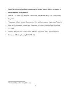 Fate of pirlimycin and antibiotic resistance genes in dairy manure slurries in response to temperature and pH adjustment.